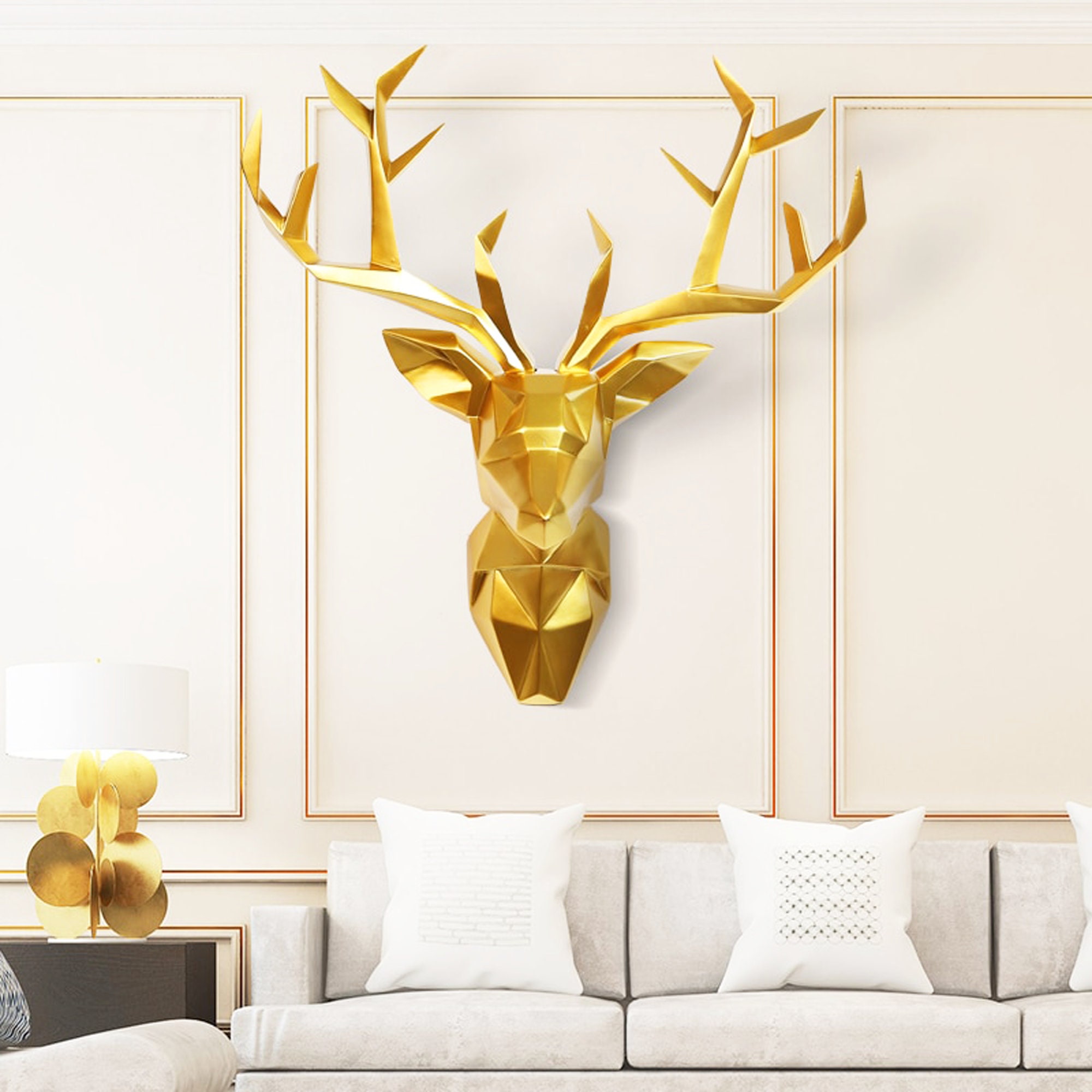 Deer Head Wall Sculpture, Artificial Deer Head Antlers Wall Decor with Glasses and Pipe, Resin Deer Head Wall Mount Geometric Stag Animal Head Wall Hanging Decor, for Living Room Bedroom Kitchen Gift. Plastic. 3.4 out of 5 stars 12. $33.09 $ 33. 09. Save 3% at checkout. FREE delivery Mon, Apr 29 on your first order.